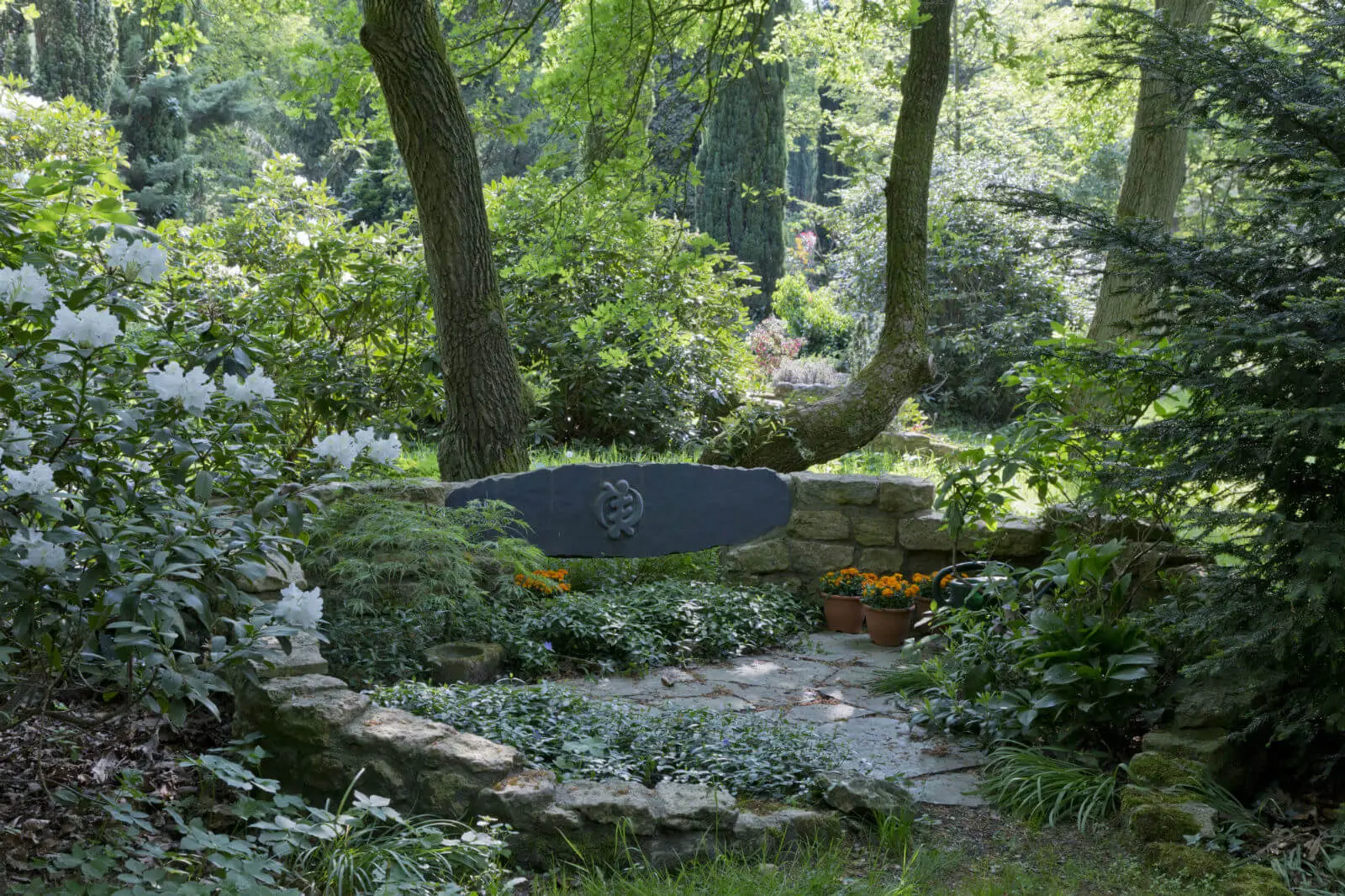 De persoonsgegevens worden verwerkt in het doorlopende muurtje aan de voorzijde van de terrasgraven.